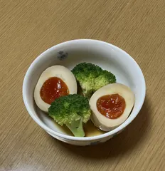すき焼のたれ を使って 味付けたまごを作りました🐣カットしてサラダに使う予定