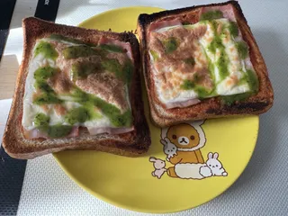 いつものチーズトースト 上手に焼けるとテンション上がりますヽ(o・∀・)タコミートソースは薄く塗るのがポイントです。薄くなっても味はしっかり♫