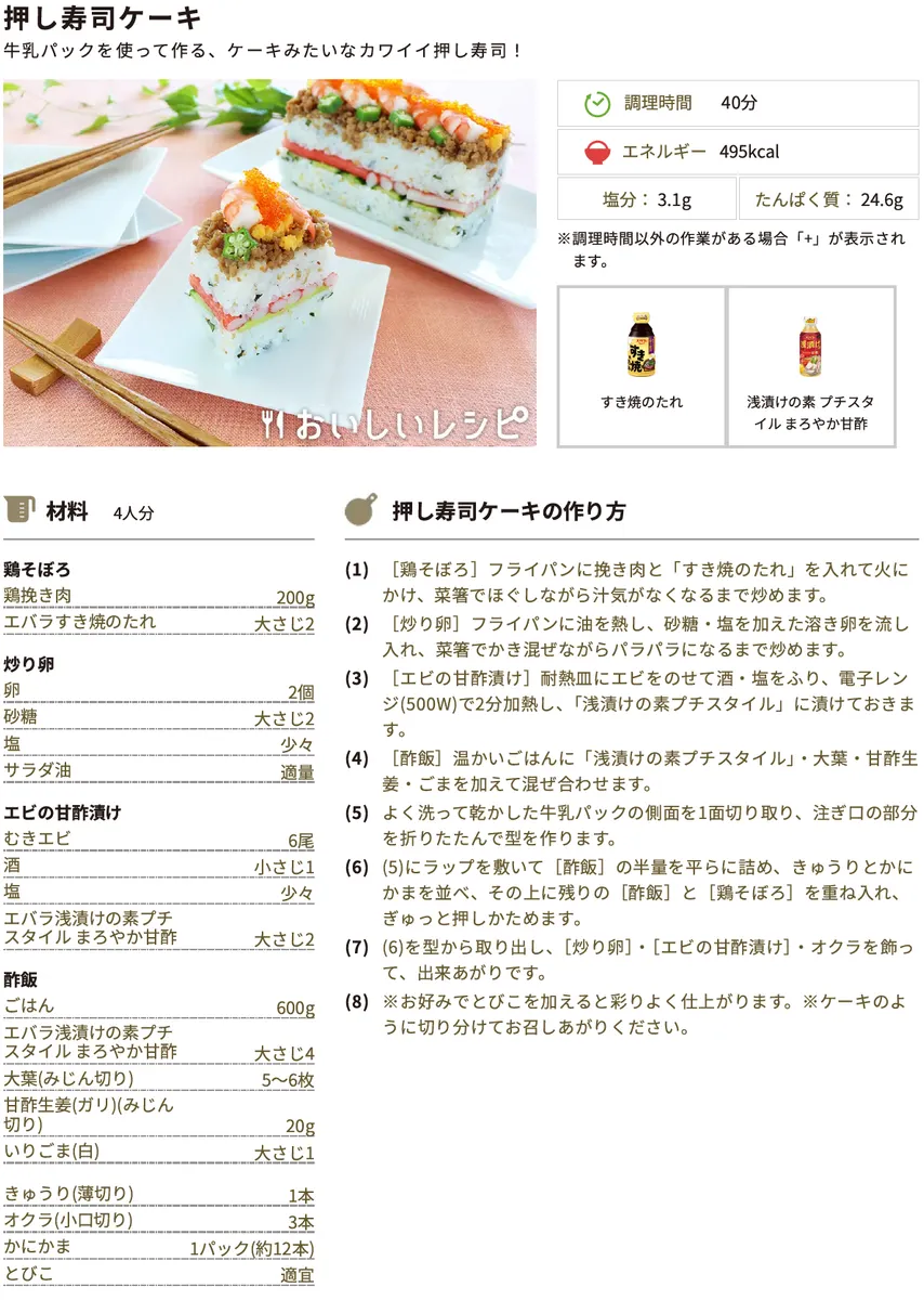牛乳パックを使って、ケーキみたいなカワイイ押し寿司が完成です✨✨
