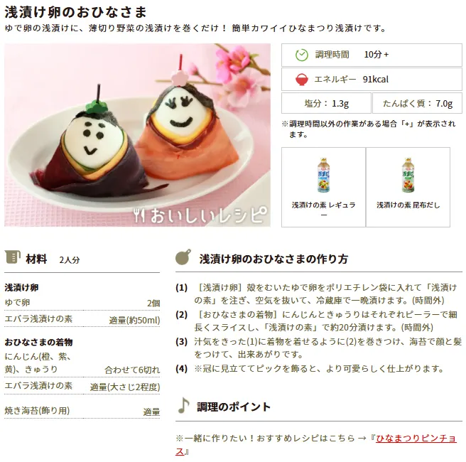 今週のおすすめレシピ①:浅漬け卵のおひなさま
