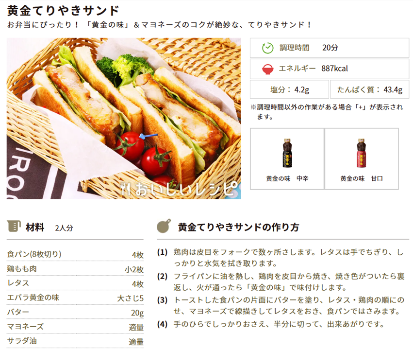今週のおすすめレシピ②:黄金てりやきサンド