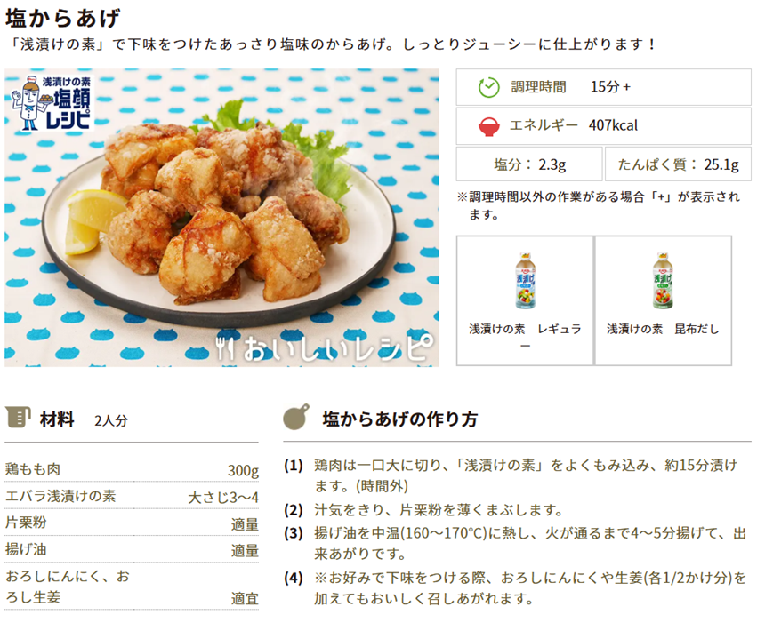 「浅漬けの素」で下味をつけて揚げるだけで、しっとりジューシーに仕上がります♪