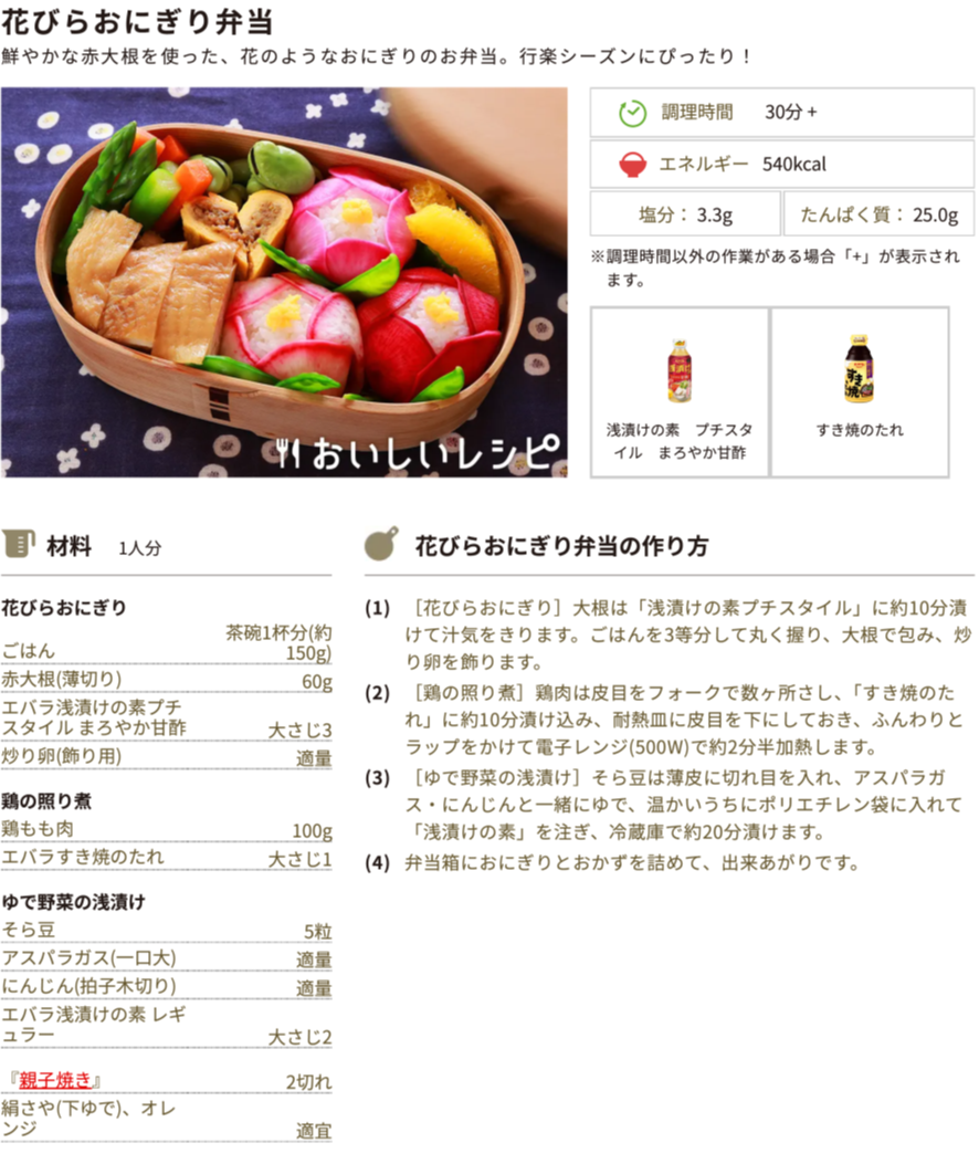 今週のおすすめレシピ③:花びらおにぎり弁当