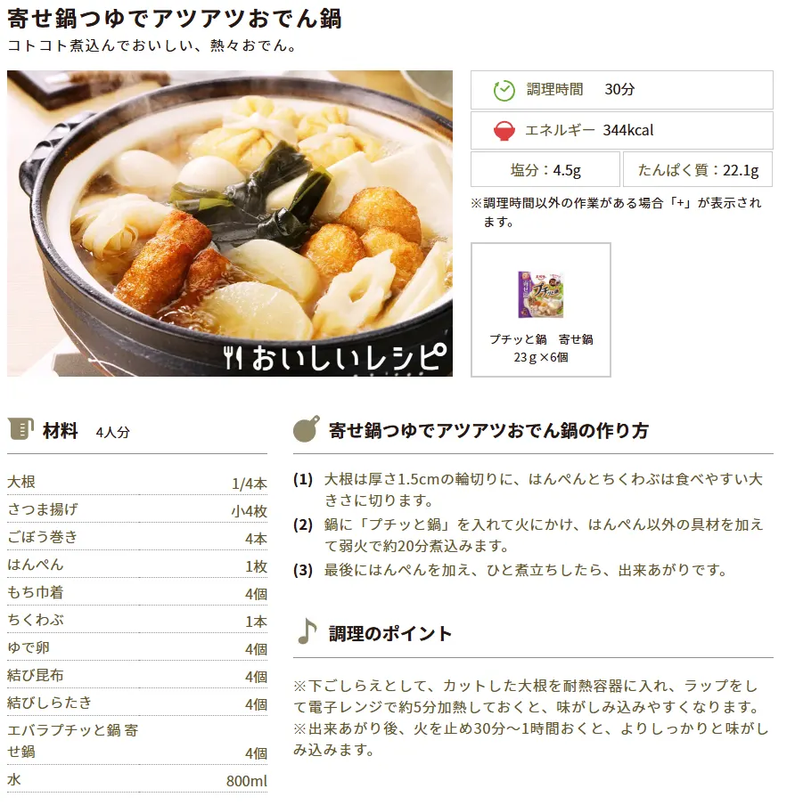 今週のおすすめレシピ①寄せ鍋つゆでアツアツおでん鍋