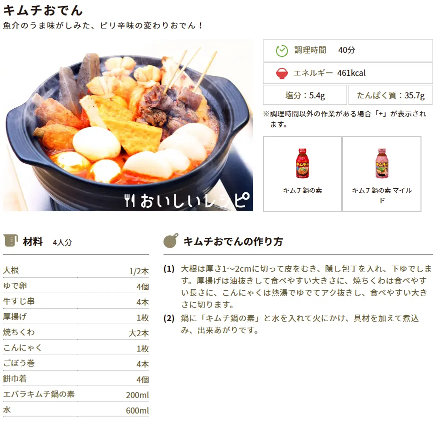 こちらのレシピは「キムチ鍋の素」「キムチ鍋の素 マイルド」を使ったレシピです!