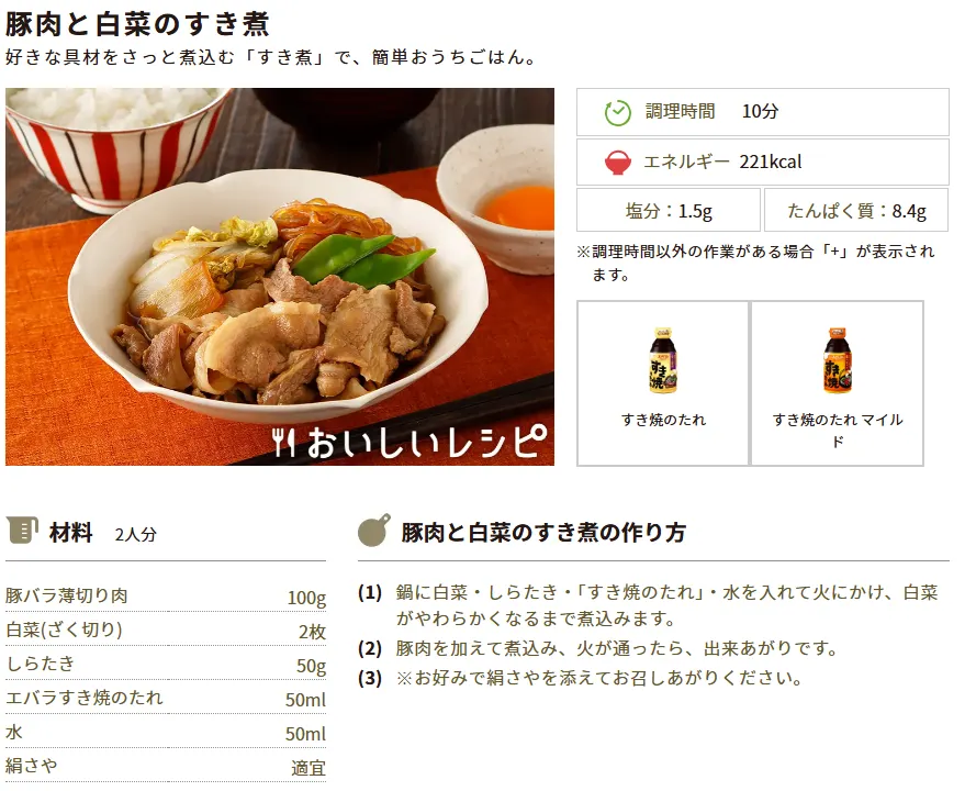 こちらのレシピは「すき焼のたれ」「すき焼のたれ マイルド」を使ったレシピです!