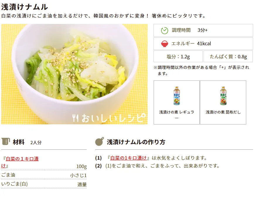 こちらのレシピは「浅漬けの素 レギュラー」「浅漬けの素 昆布だし」を使ったレシピです!