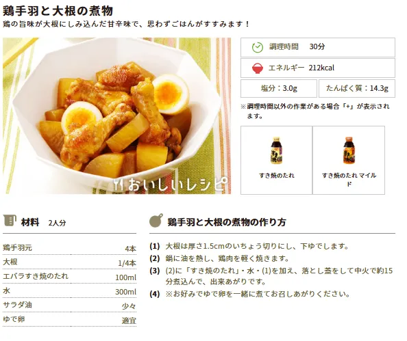 今週のおすすめレシピ②鶏手羽と大根の煮物