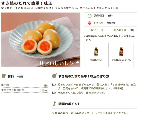 今週のおすすめレシピ④すき焼のたれで簡単!味玉