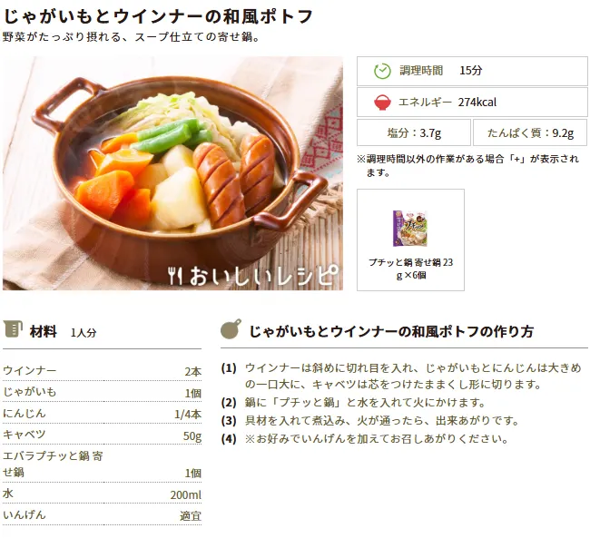 今週のおすすめレシピ②:じゃがいもとウインナーの和風ポトフ