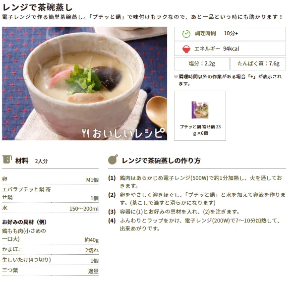 今週のおすすめレシピ①レンジで茶碗蒸し