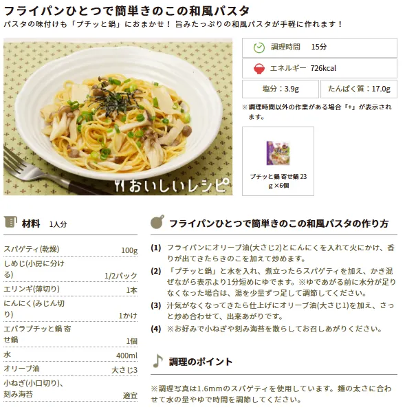 プチッと寄せ鍋買ったら和風パスタ作ってみたい