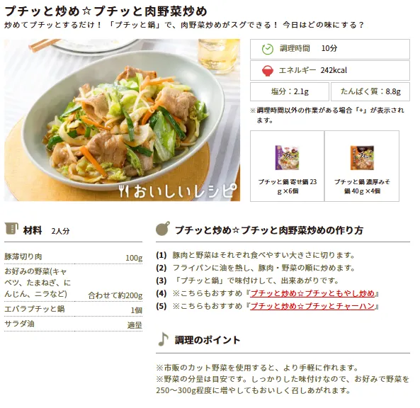 TVCMなどでも「プチッと炒め」を提案していたのですが、