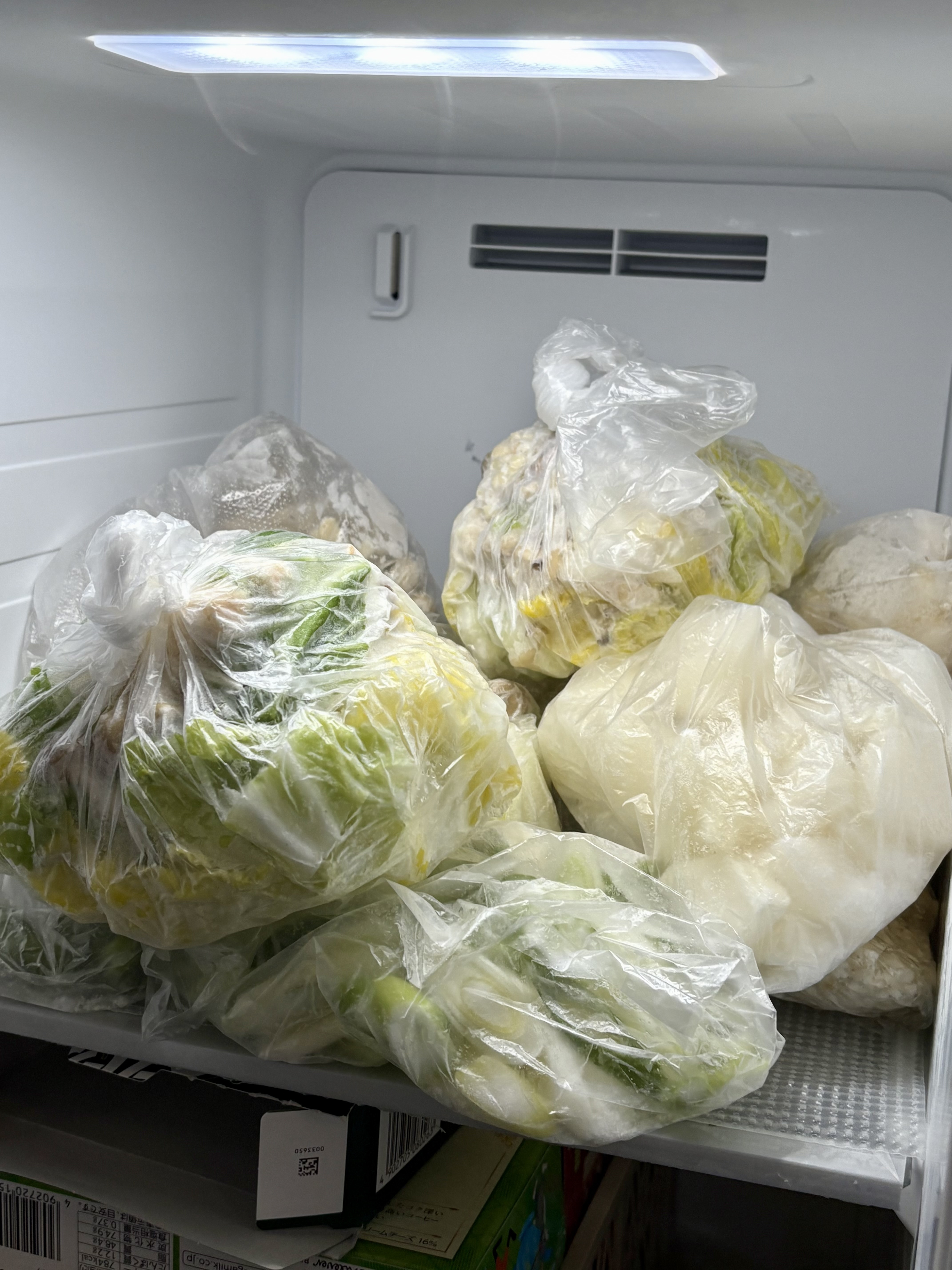 白菜を冷凍した事がないですが、食感は変わらないかな~