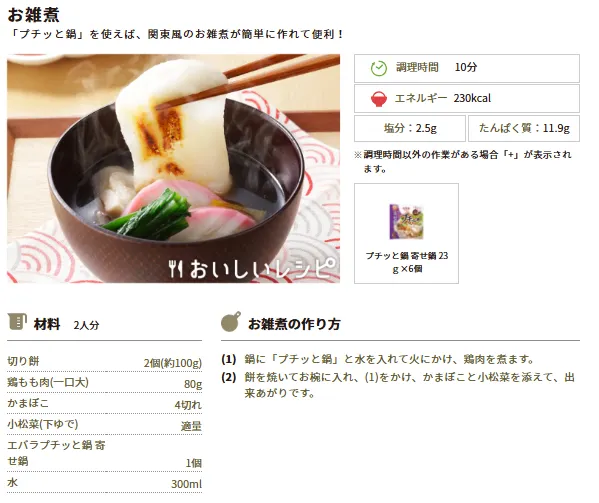 かつおと昆布のうま味が詰まった「プチッと鍋 寄せ鍋」は、お雑煮作りにも便利!