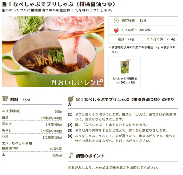 今週のおすすめレシピ②旨!なべしゃぶでブリしゃぶ〈柑橘醤油つゆ〉