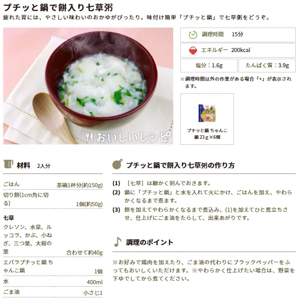 投稿を表示今日は七草の日なのでレシピを参考に七草がゆを作りたいと思います。
