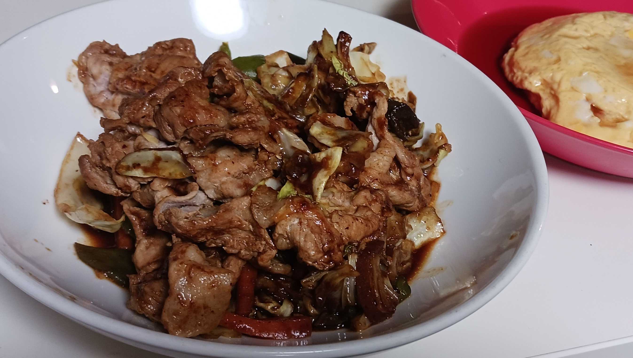 豚肉とキャベツ・ピーマン・人参とプチっと中華・回鍋肉2個です。