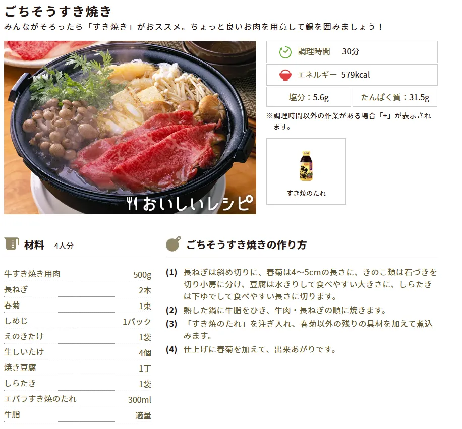 こちらのレシピは「すき焼のたれ」「すき焼のたれ マイルド」を使ったレシピです!