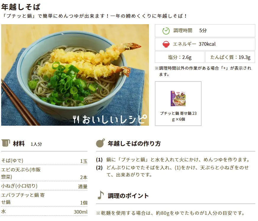 一年の締めくくりに「プチッと鍋 寄せ鍋」で作る年越しそばはいかがですか?