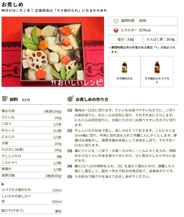 おせち料理に欠かせない縁起の良い料理「お煮しめ」は、「すき焼のたれ」だけで味が決まります!