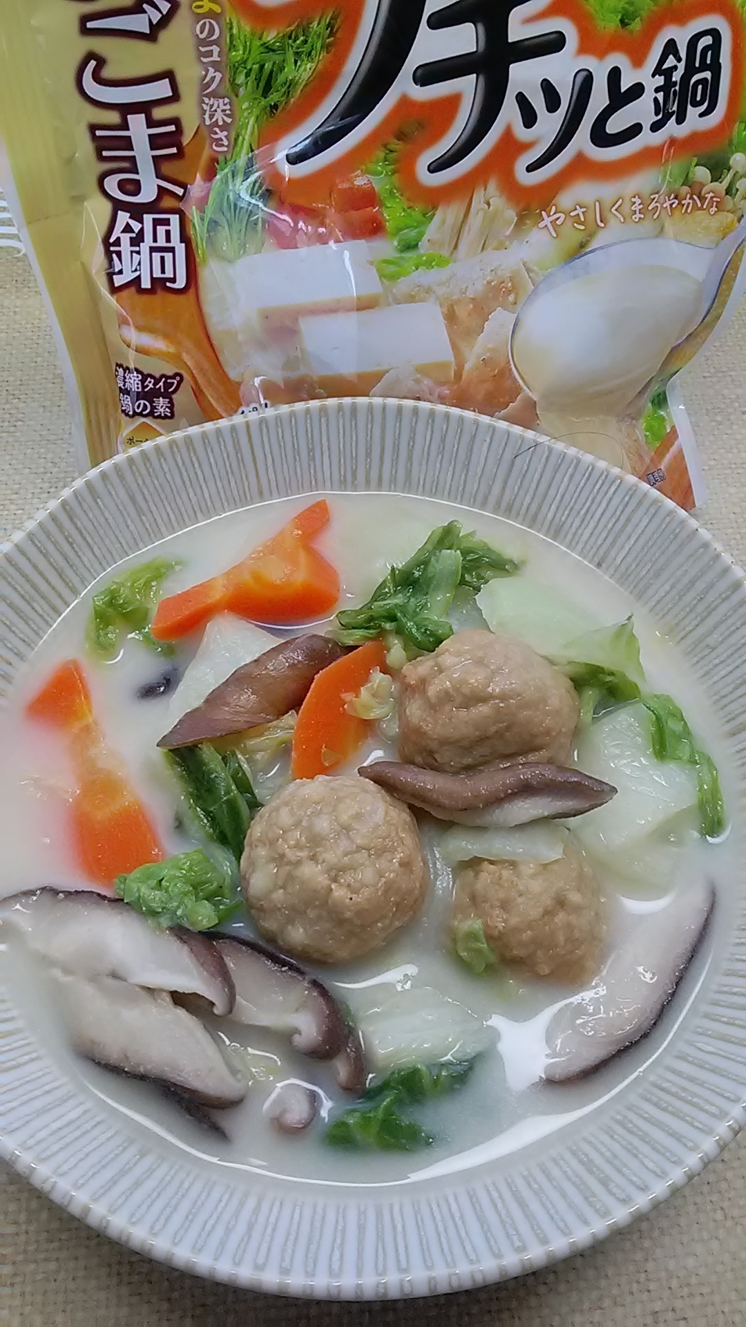 豆乳ごま鍋に鶏だんご合いますね♪