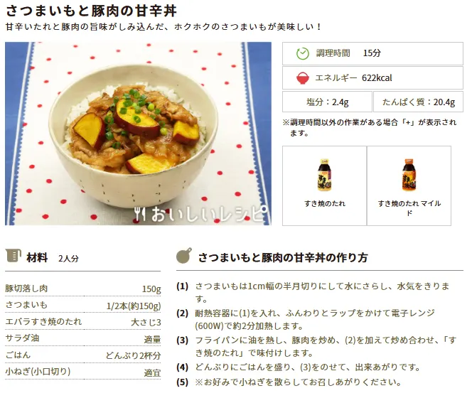 今週のおすすめレシピ②さつまいもと豚肉の甘辛丼