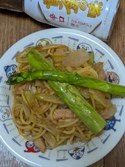 黄金の味deパスタ 黄金の味で簡単ワンパンパスタ✨焼きアスパラのせで