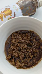 黄金の味でひき肉をからめました