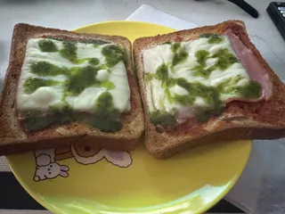 バジルソースが決め手 味がしっかりしているので、薄く塗るだけで美味しいチーズトーストができますヽ(o・∀・)ノいつもはベーコンをのせているのですが、他にもオススメな物ってありますか?