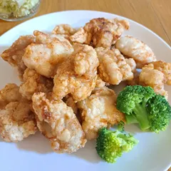 塩唐揚げっ! 浅漬けの素が残っていたので、漬け込みして唐揚げにっ😆ちょっと焦げてしまったけど、次女のお弁当に入れます!