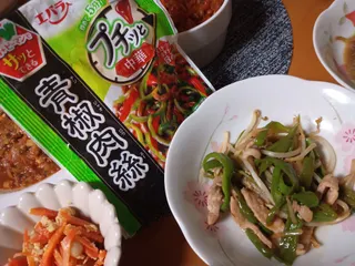 シャキシャキもやしで代用 たけのこなかったのでもやしで、これが4人分出来ました!ポーション2個に豚肉多めとピーマン、もやしで。もやしを一袋入れましたが、とっても美味しく食べれました!