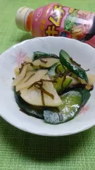 塩もみしたきゅうりと大根をキムチの鍋の素と塩昆布で和えました♪
