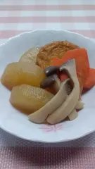 煮豚を煮たタレで大根などを煮ました。お肉の旨味たっぷりのタレが大根にしみしみです😋