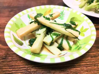 大葉と山芋でさっぱりと 山芋を拍子切りに、大葉を千切りにして煮出した日々の膳万能だしとぽん酢をあわせて30分おくとさっぱり美味しい一品に👍