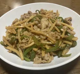 レストラン1000投稿キリ番いただき‼️プチッと中華青椒肉絲で豚の青椒肉絲 豚肉が余っていたので豚肉を使ってプチッと中華青椒肉絲で青椒肉絲を作りました♪豚肉でも十分美味しい😋
