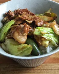 昨日初めて食べて美味しかった回鍋肉! また昼ごはんに作りました♪今日は『よりおいしく!』のレシピを参考に、長ねぎとピーマンを加え回鍋肉丼に! 満足の美味しさ😋🍴💕