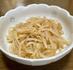 もやしを3分30秒茹でてキムチ漬けの素を和えてもやしキムチを作りました♪ピリ辛のもやしが美味しい😋