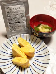 『日々の膳 万能だし』試供品投稿 当選させていただいた『日々の膳 万能だし』を使って、だし巻き卵と卵スープにしてみました。水を350mlにして薄めに出汁を取ったので、卵焼きは素朴な味になりましたが、卵スープは美味しく飲めました。塩、醤油などの下味がついていて、しょっぱいとまではいかない塩気はあるので、味付けしなくても楽しめました。