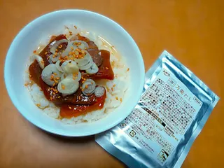 日々の膳万能だしで漬けマグロの出汁茶漬け 万能だしをそのまま使いたいな~と思って昼食に漬けマグロを出汁茶漬けにして食べてみました。 ゆっくり味わいたかったのに、万能だしが美味しすぎてザブザブ食べてしまう始末!しかももっと食べたい欲が湧いて夕食の白米も素の出汁茶漬けにしてやっぱりかき込んでしまいました。 シンプルだけどハマ